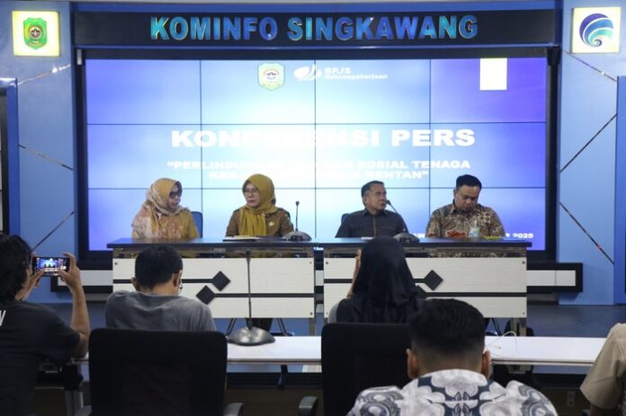 Singkawang, MC – Pemerintah Kota Singkawang secara resmi meluncurkan Program Perlindungan Pekerja Rentan dan Pekerja Sawit di Ruang Basement Kantor Wali Kota Singkawang, Senin (15/12/2025). Program ini menjadi wujud komitmen pemerintah daerah dalam menghadirkan perlindungan sosial ketenagakerjaan bagi pekerja dengan risiko kerja tinggi dan kemampuan ekonomi terbatas.