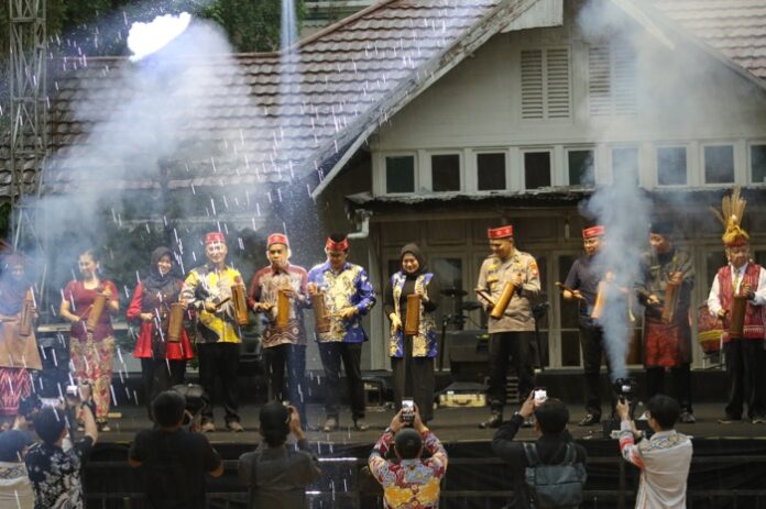 Singkawang, MC – Irama seruling burung khas masyarakat Sunda berpadu dengan denting kentongan yang dipukul serempak oleh Wakil Wali Kota Singkawang, Muhammadin, bersama jajaran Forkopimda, menandai dimulainya Pekan Kebudayaan Daerah (PKD) Kota Singkawang 2025, Minggu (12/10/2025).
