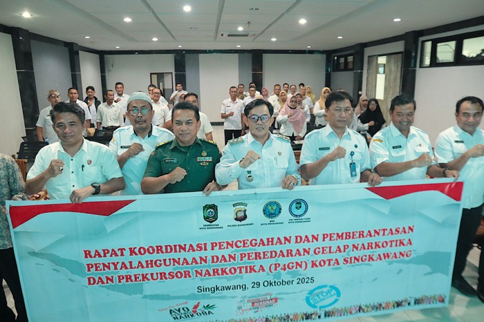 Singkawang, MC – Pemerintah Kota Singkawang meneguhkan komitmennya dalam upaya Pencegahan dan Pemberantasan Penyalahgunaan serta Peredaran Gelap Narkotika (P4GN) melalui rapat koordinasi di Ruang Bumi Bertuah, Kantor Wali Kota Singkawang, Rabu (29/10/2025).