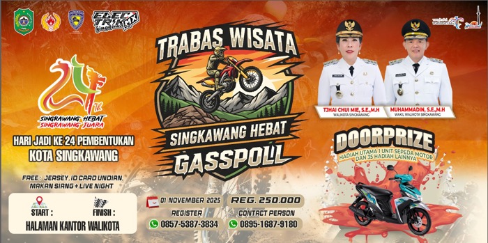 Singkawang, MC – Dalam rangka memperingati Hari Jadi ke-24 Pembentukan Kota Singkawang, Pemerintah Kota Singkawang menggelar kegiatan bertajuk Trabas Wisata Singkawang Hebat Gaspoll pada Sabtu, 1 November 2025. Kegiatan ini menjadi salah satu agenda unggulan yang memadukan olahraga, wisata, dan hiburan bagi masyarakat.