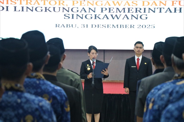Singkawang, MC – Wali Kota Singkawang, Tjhai Chui Mie, secara resmi melantik dan mengambil sumpah/janji 71 pejabat Administrator, Pengawas, dan Fungsional di lingkungan Pemerintah Kota Singkawang. Pelantikan berlangsung di Balairung Kantor Wali Kota Singkawang, Rabu (31/12/2025).