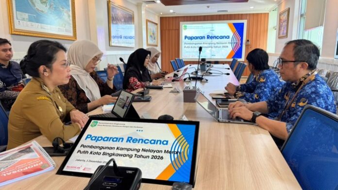 Singkawang, MC – Wali Kota Singkawang, Tjhai Chui Mie, memaparkan rencana pembangunan Kampung Nelayan Merah Putih tahun 2026 ke Kementerian Kelautan dan Perikanan (KKP) RI, Senin (1/12/2025). Ia hadir bersama Plt. Kepala Dinas Pertanian, Ketahanan Pangan, dan Perikanan beserta jajaran.