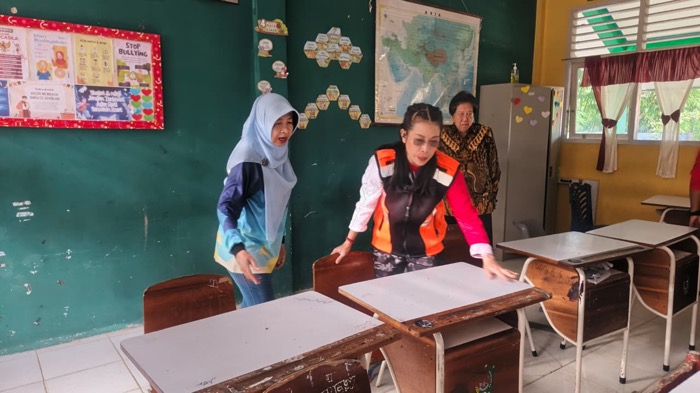 Kunjungan kali ini menitikberatkan perhatian pada aspek infrastruktur dasar sekolah. Dari hasil pantauan langsung, ditemukan sejumlah ruang kelas yang mengalami kerusakan fisik mulai dari atap bocor, keramik pecah, hingga meja dan kursi yang tidak lagi layak digunakan.